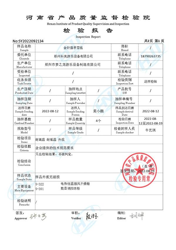 我公司產(chǎn)品有國家、省級質(zhì)檢單位檢驗合格證書,也有第三方行業(yè)鑒定證書,項目驗收標準等一系列手續(xù)。公司目前在新疆、河北、南陽、山西等多個地區(qū)有旱滑雪、彩虹滑道、滑草、滑沙等項目正在運營。